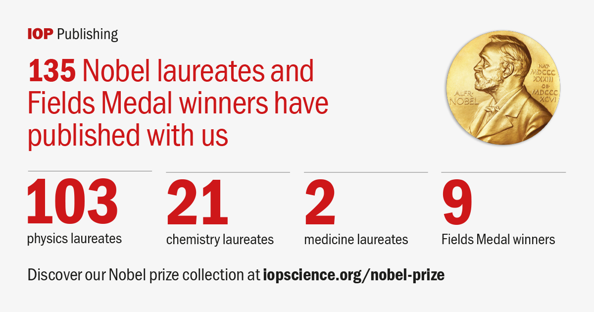 The Nobel Prize in Physics has been awarded to 230 Nobel Prize laureates since 1901 of which 135 laureates and field medallists have published their work with IOP Publishing. Check out their work in our dedicated Nobel Prize Collection.